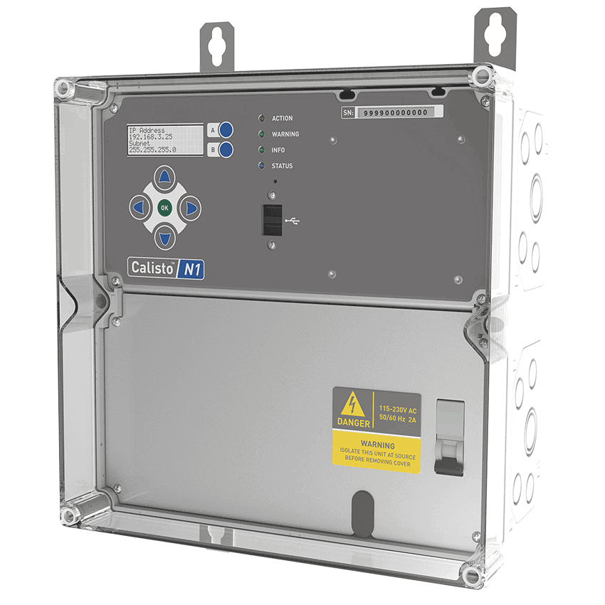 The Calisto™ T1 encapsulates the functionality of bushings, partial discharge and Input/Output modules in a single configurable package in a cost-effective manner. It provides a clear user interface through a built-in server and manages user access, alert setting, alert management and data visualization — bringing together data from Doble and third-party devices.